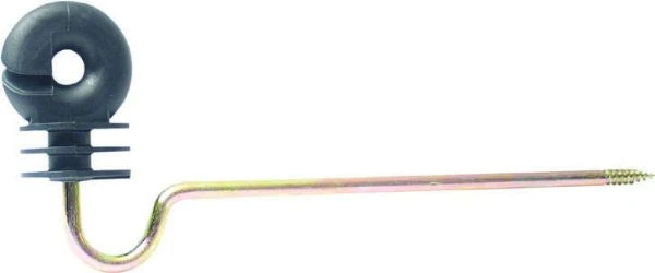 Offset ring insulator (21cm) for wires, ropes and tapes up to 12mm wide. Cranked arm to allow higher positioning of the rope or wire.