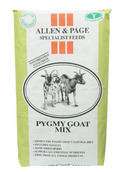 Allen & Page Pygmy Goat Mix is a specially formulated high fibre feed for Pygmy goats. The wholesome feed is designed to mimic the natural diet of a Pygmy Goat and includes a variety of dried fruits & vegetables providing extra vitamins & minerals. Uses source identity preserved, Non-GM ingredients. Ingredients can change colour with the seasons.